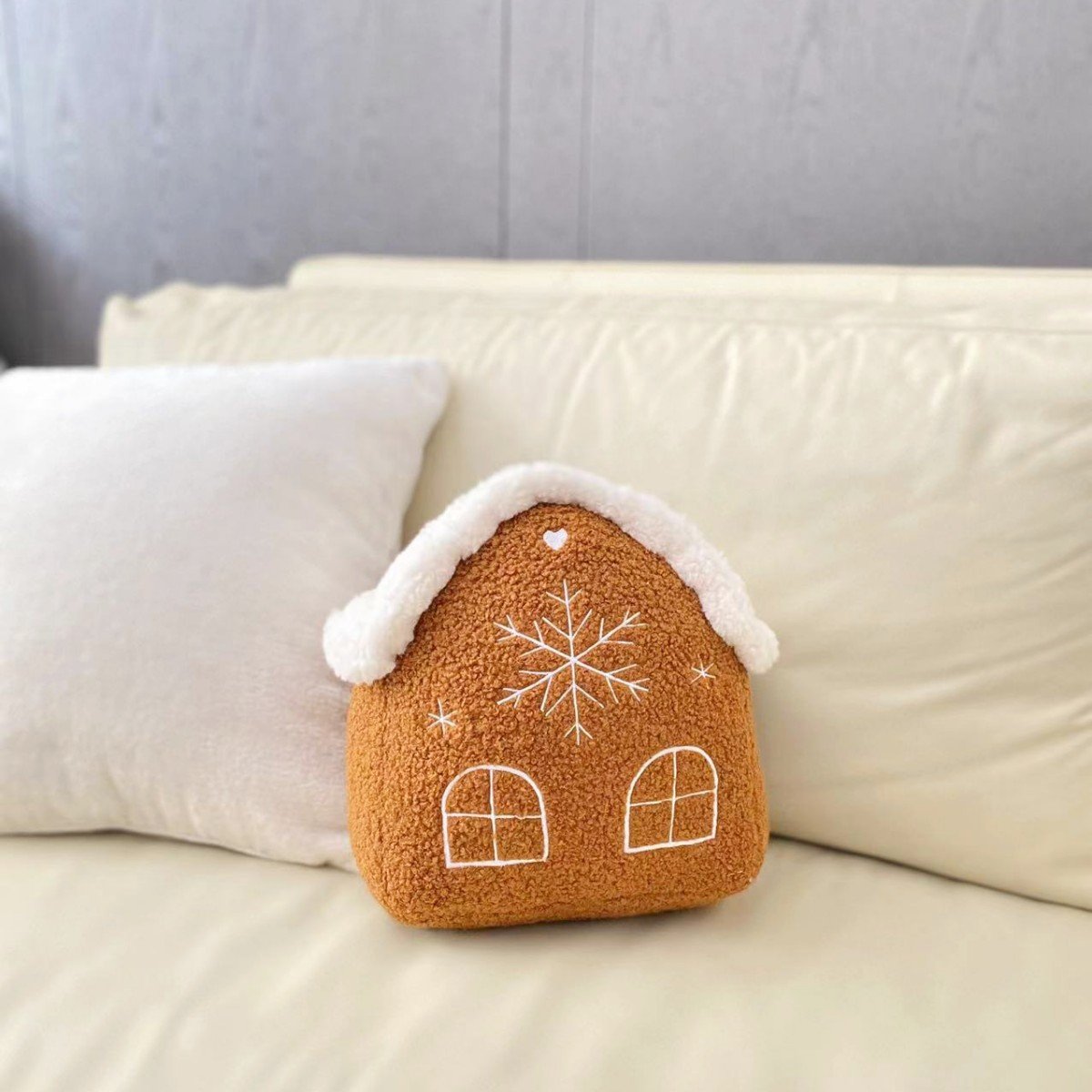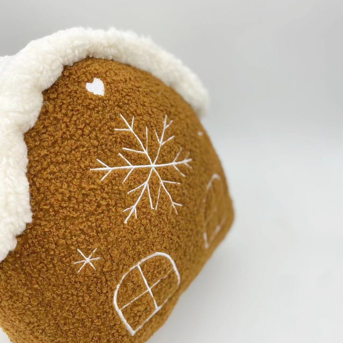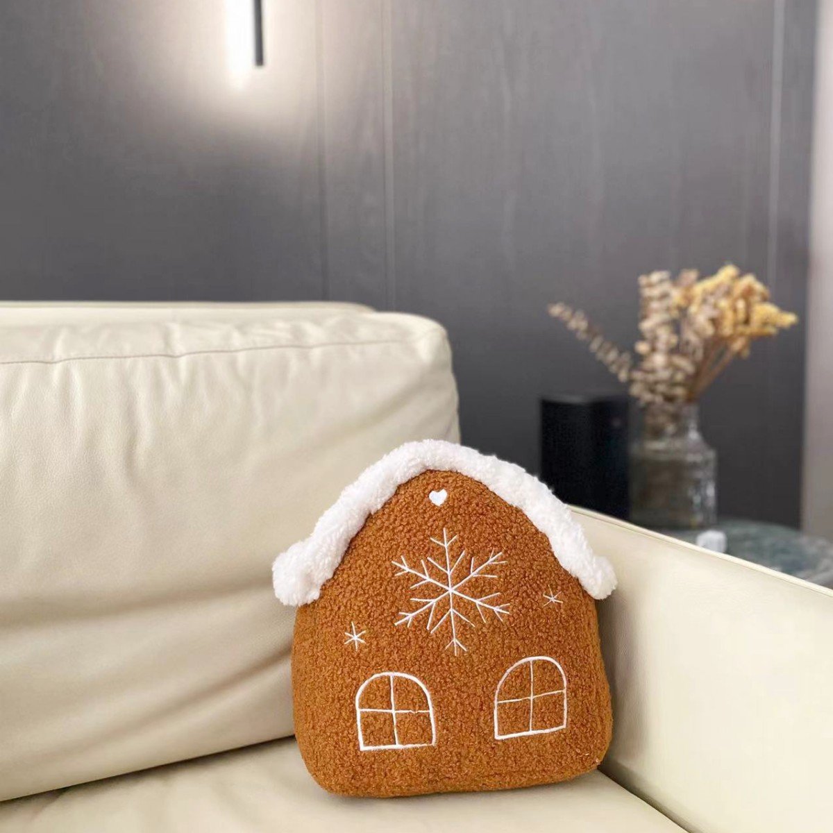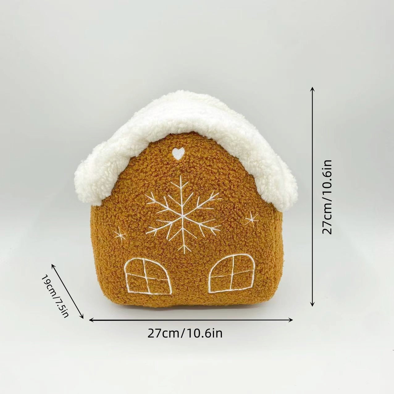 Christmas Decor Gift Xmas Plush Faux Teddy Cushion Pillow Gingerbread House