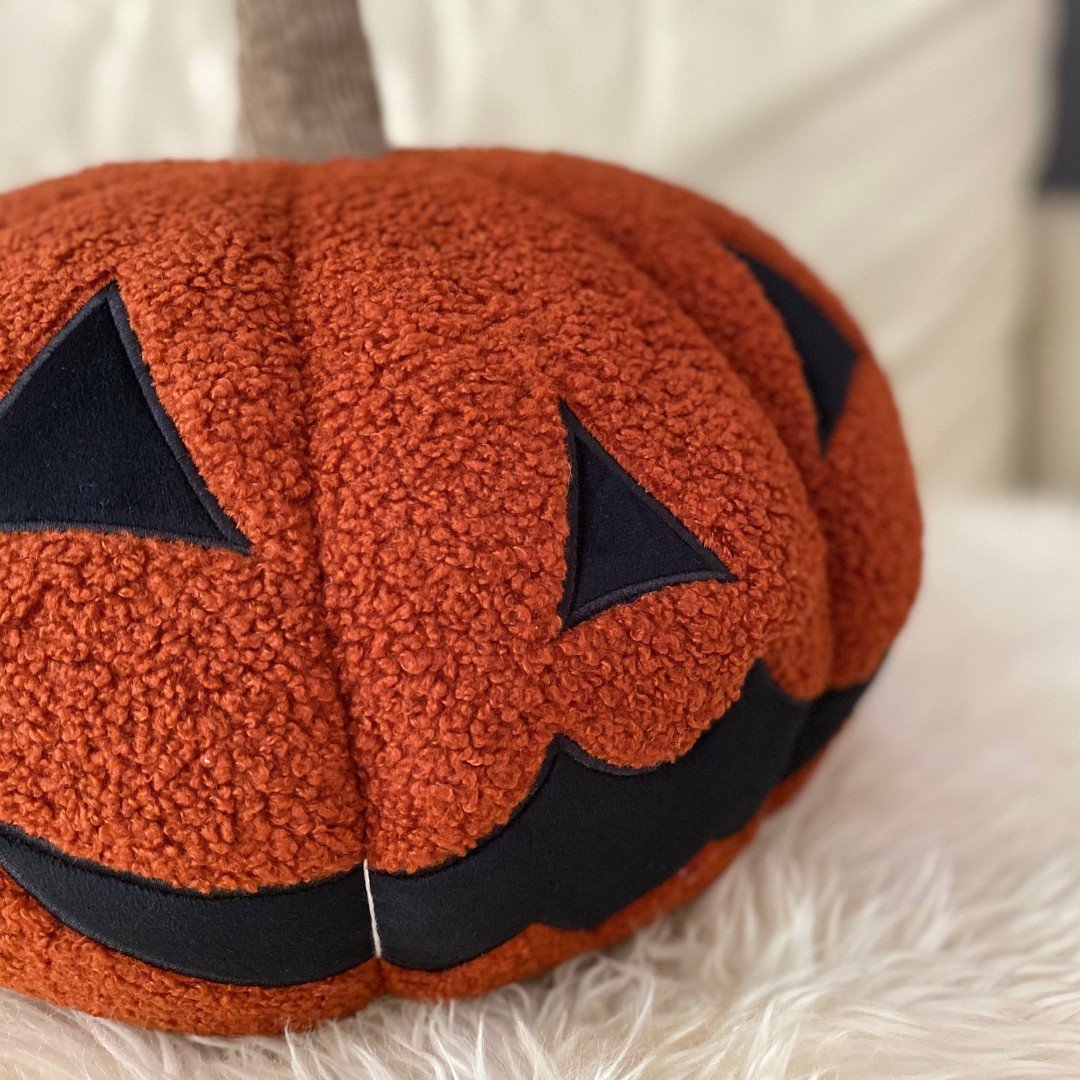 Pumpkin Pillow takes soft teddy fabric and creates a fun and festive jack-o-lantern pumpkin pillow for Halloween, adding a rustic, yet elegant touch to your fall and Halloween decorations.